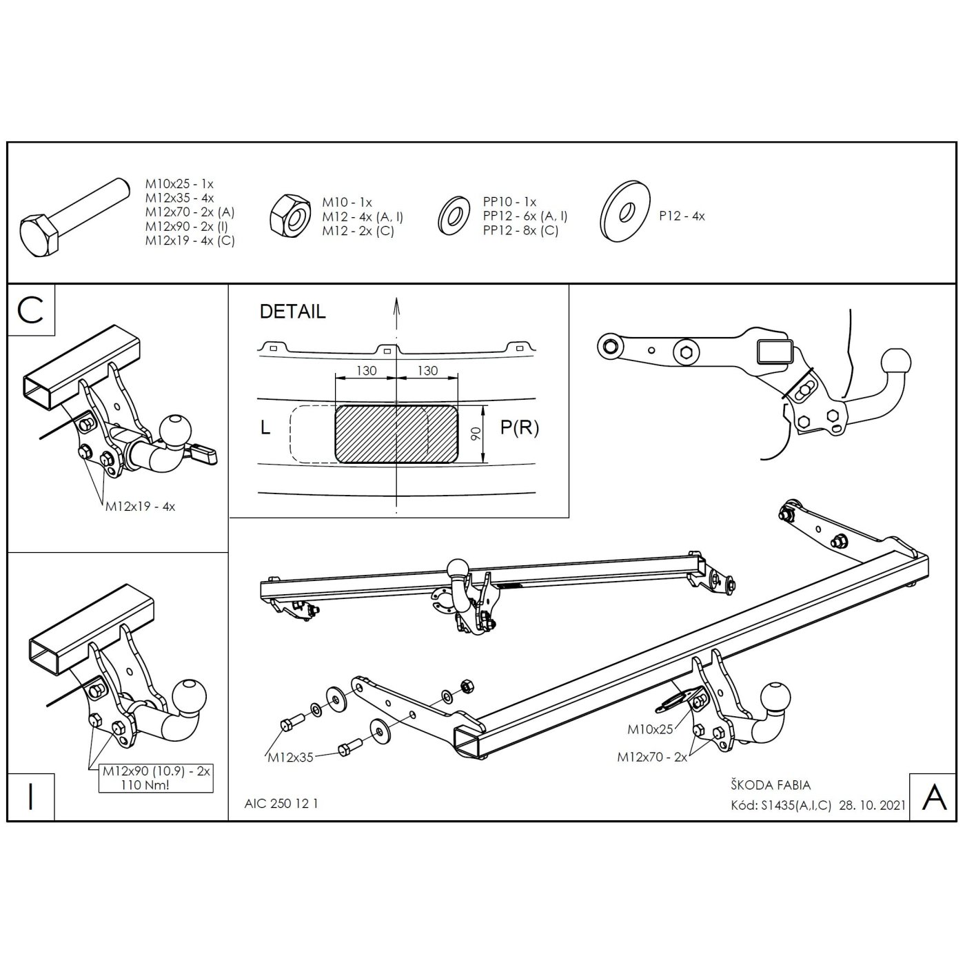 | Poznámka | 4. generácia, 5dv - Pri montáži je potrebné demontovať nárazník.- Použitie ťažného zariadenia si vyžaduje rezať do nárazníka. |