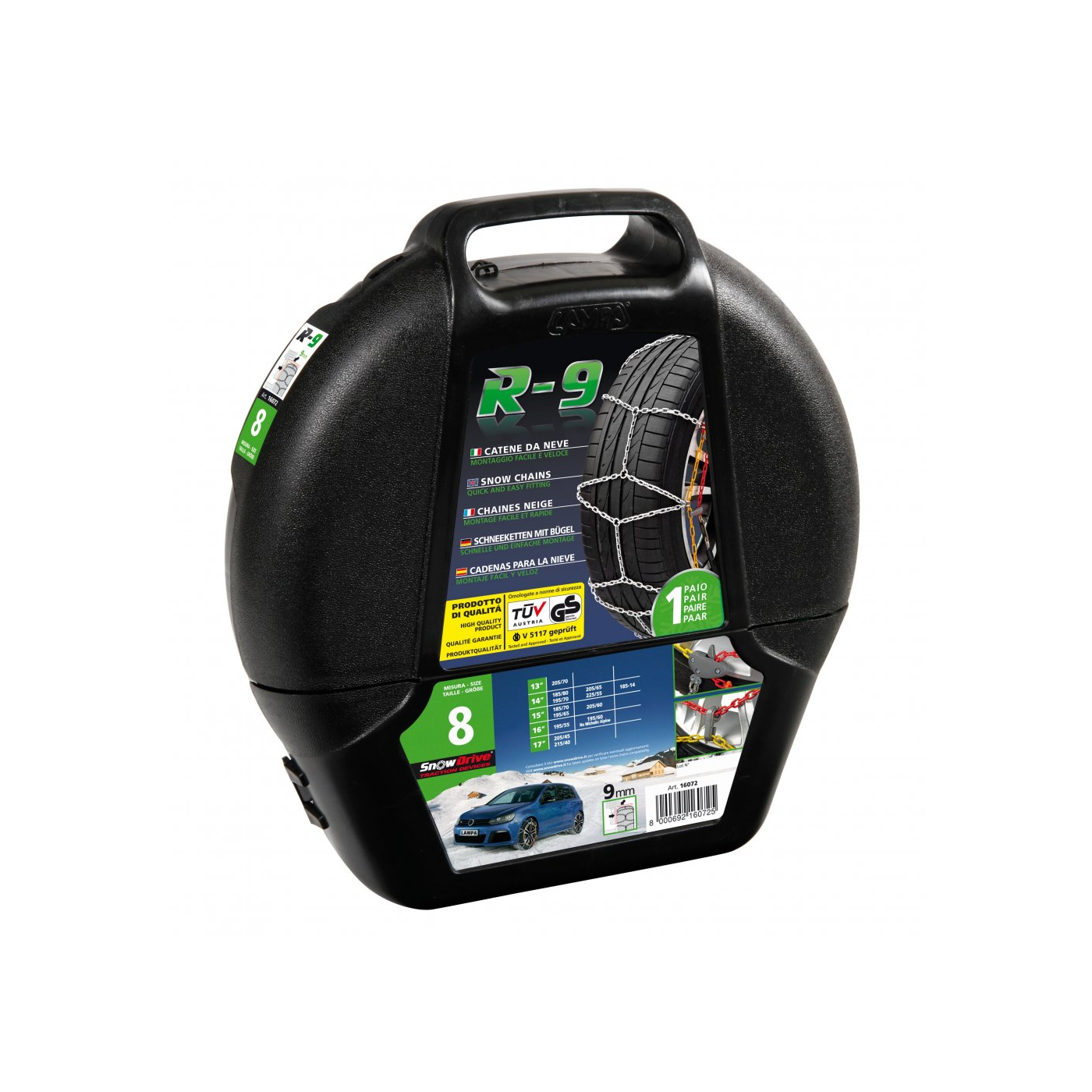 • Pár kompaktných snehových reťazí, s rozmerom od 9 mm