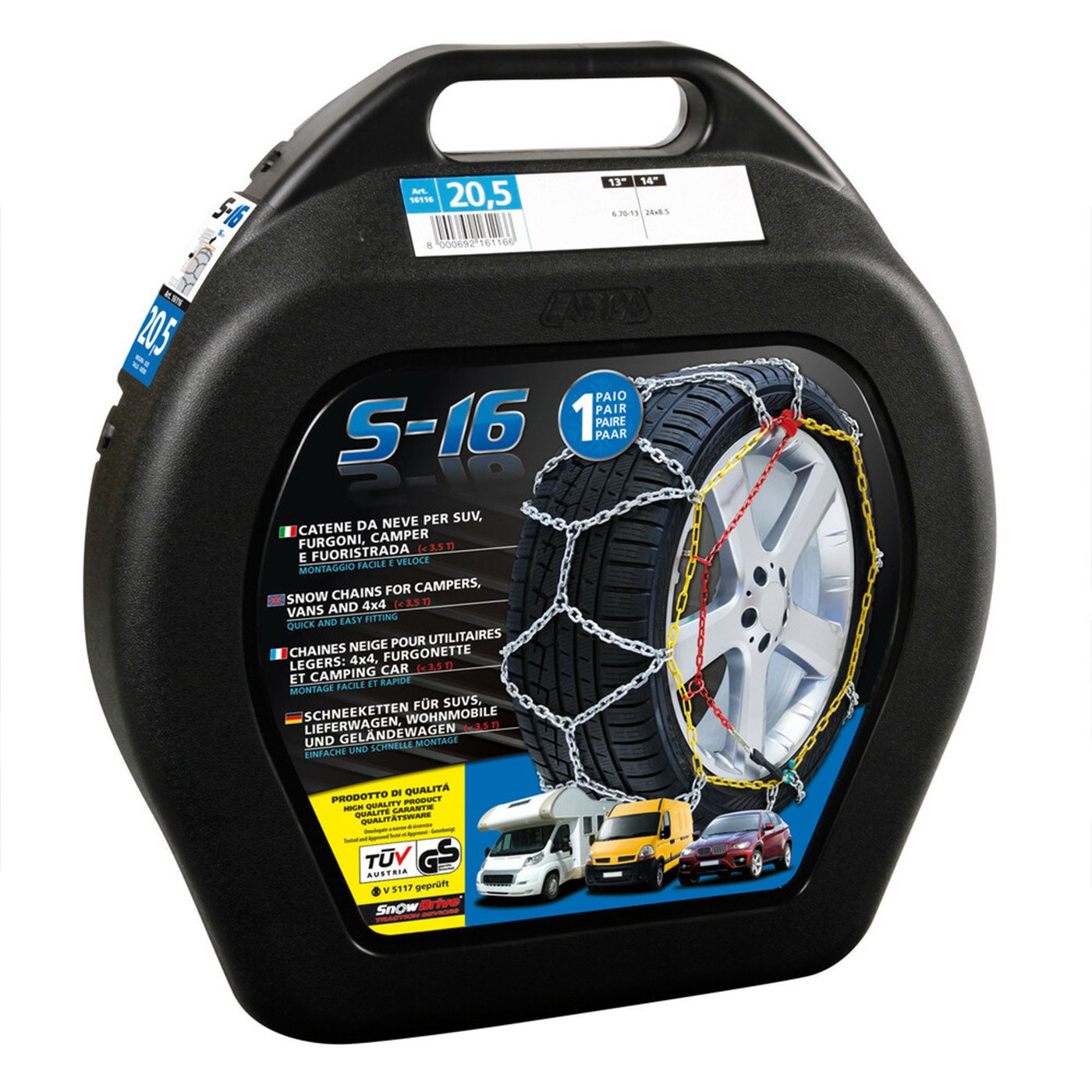 | Podnadpis | kvalitné zosilené 16 mm snehové reťaze pre dodávky a SUV |
