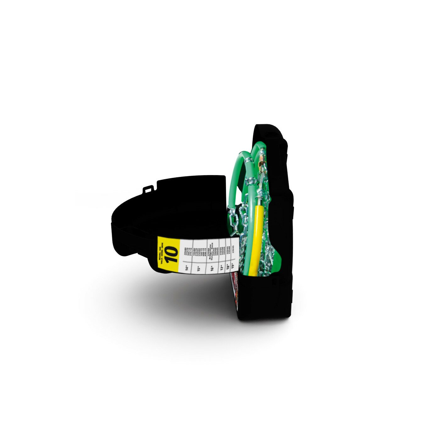 Priamo na reťazi je na zelenom štítku vyrazený rozmer reťazí. Veľmi praktické v prípade, že stratíte obal a aplikačný list