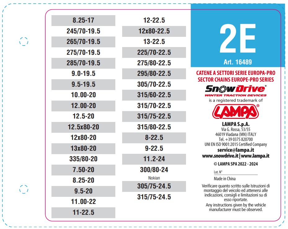 Snehové reťaze na nákladné autá SnowDrive Track sector Europa-Pro 3E sú navrhnuté do európskych podmienok, pre nákladné automobily a autobusy na použitie na zasneženej a zľadovatenej vozovke. V jednom balení sú 2 reťazové pásy určené na jedno koleso.